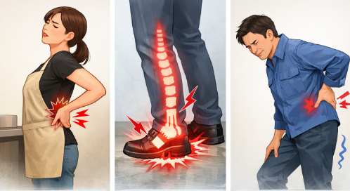 立ち仕事による腰痛の原因は、単に「長く立っているから」ではありません。